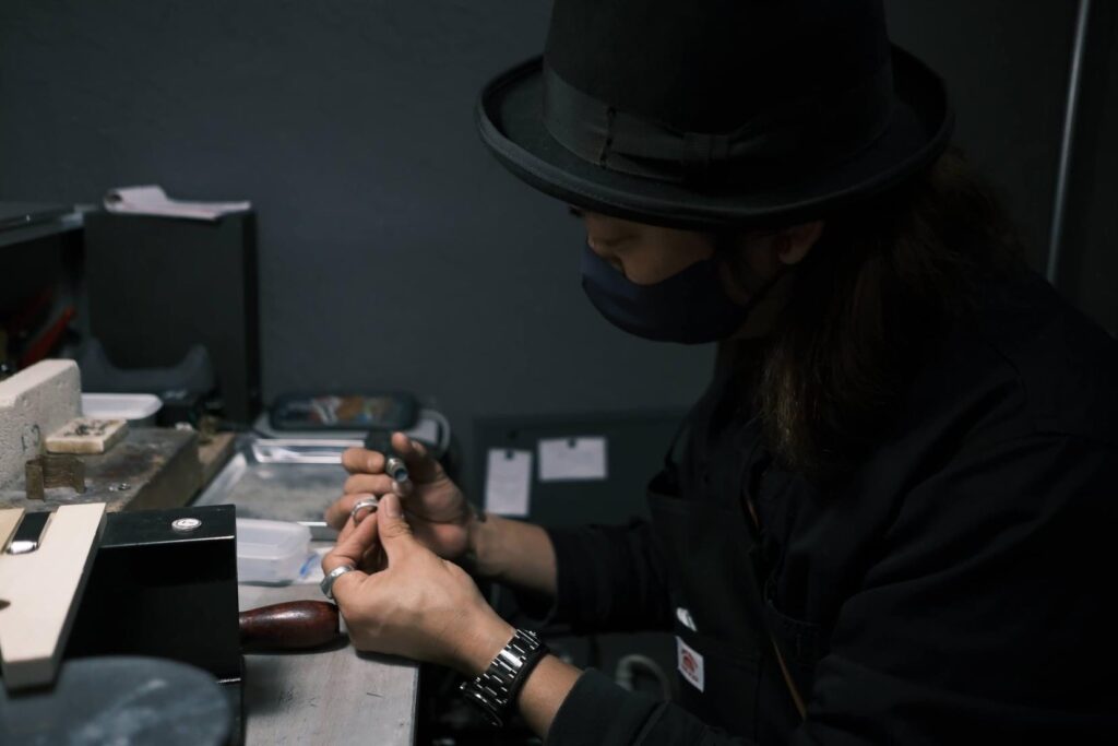 8人のスタッフが彫金、鋳造(キャスト)石留め等にて製作したシルバーアクセサリーやジュエリー