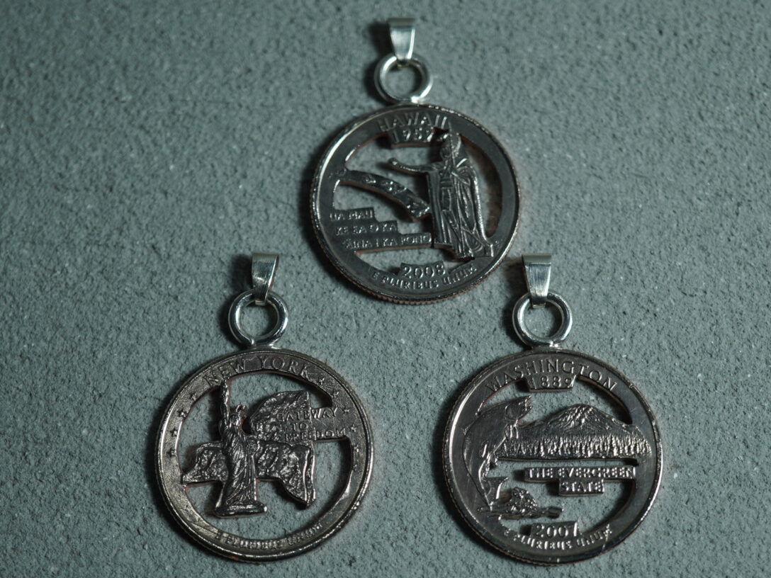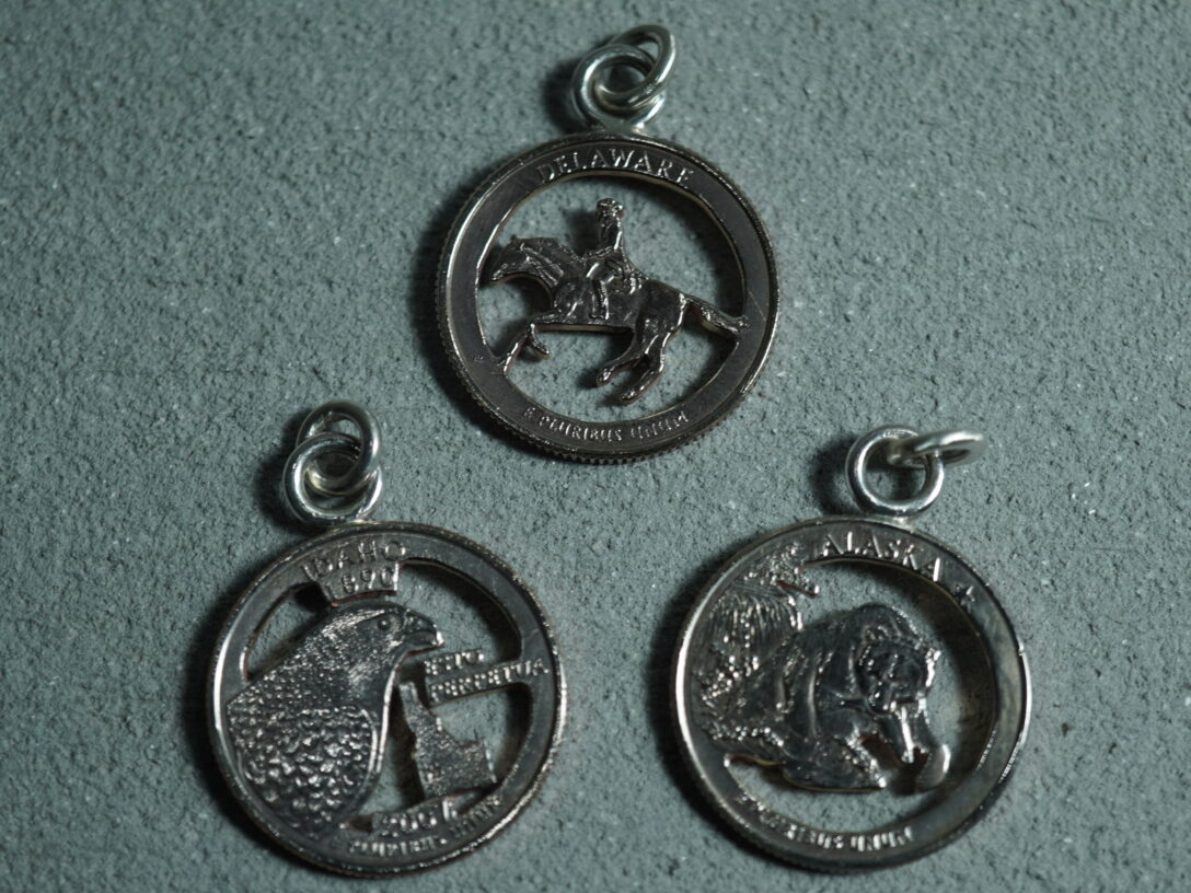 コインそれぞれの州のデザインは残しつつ、背景の部分だけをくり抜くことで
