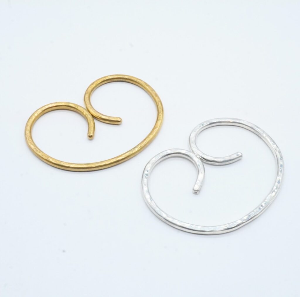 ▲金属を最も美しく見せる加工とされるツチ目模様を施し、デザイン性と強度に優れたアクセサリーに仕上げました。