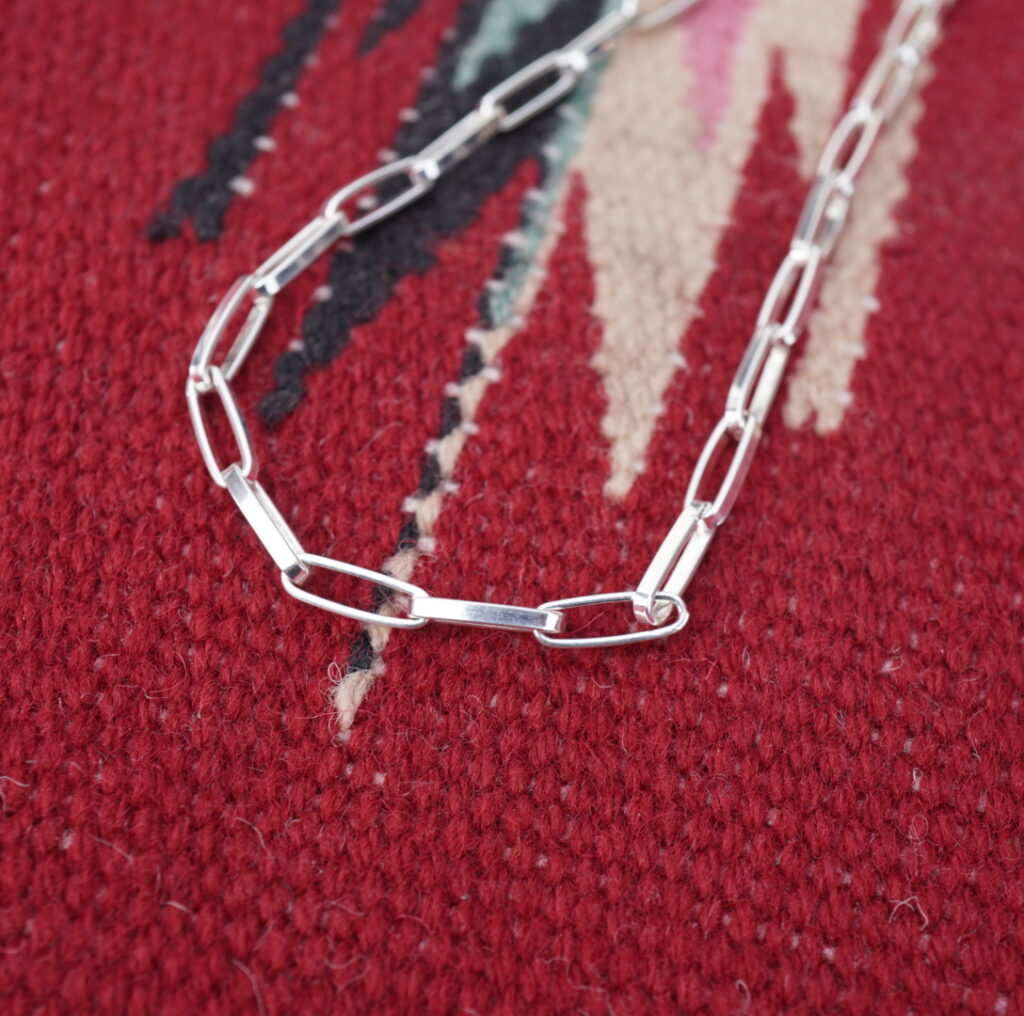 シンプルなデザインながらも、細部までこだわって作られたナバホチェーンは、どんなスタイルにも合わせやすく、長く愛用できるアイテムです。