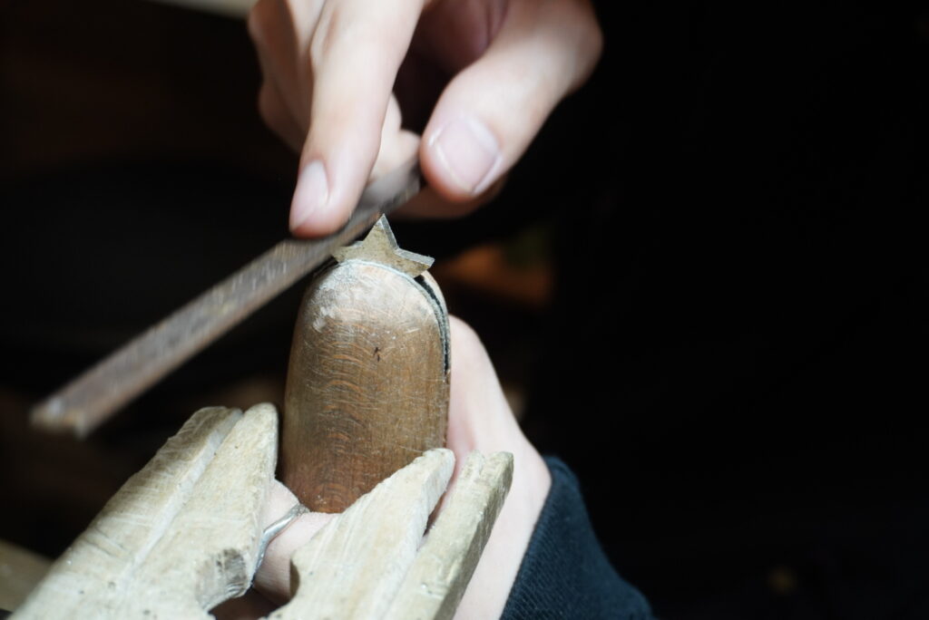ここで10面ある各面を1つずつ削り、スタッズ特有の立体感を出していきます