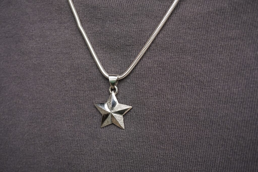 角度によって輝きが変わる、立体的で存在感のある星モチーフペンダントの完成です✨